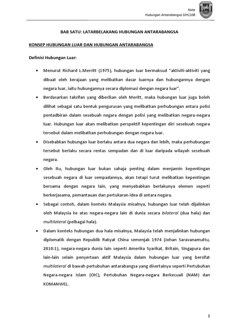Nota Sjh1108 Hubungan Antarabangsa Bab Satu Pdf